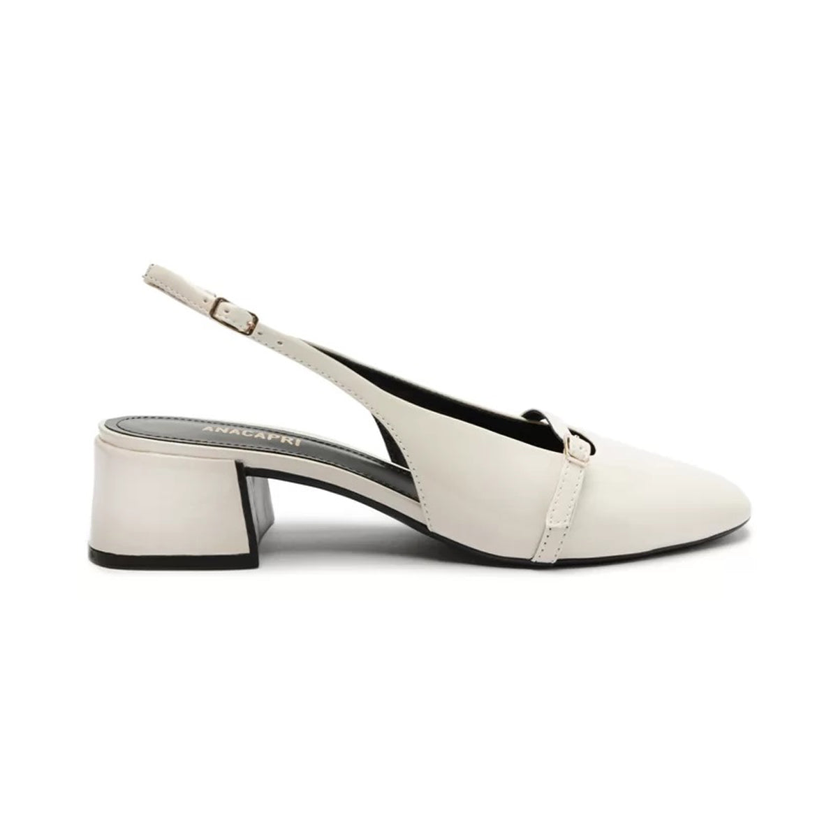 Sapatilha New Milena boneca na cor branca. De salto em bloco baixo e biqueira quadrada, traz cabedal com recorte reto sobre o peito do pé, formato ajustado nas laterais e acabamento envernizado. Aberta atrás estilo slingback, possui tiras finas conectadas ao cabedal que seguem pelas laterais contornando o calcanhar, com fechamento afivelado lateral. O modelo traz detalhe em tirinha fina presa na lateral com fecho em fivela metálica ajustável. Com nova palmilha preta e assinatura Anacapri. A sapatilha boneca New Milena estilo slingback já é um clássico e vai se tornar o item desejo para a sua coleção. Perfeita para compor produções elegantes e sofisticadas para o trabalho e eventos. Versátil, vem para a temporada de inverno Anacapri com acabamento metalizado e biqueira envernizada. Atemporal, esse sapato em salto bloco é confortável e estruturado, garantindo estabilidade no calce. Com um toque delicado e cheio de estilo, arremate a produção com bolsas tote.