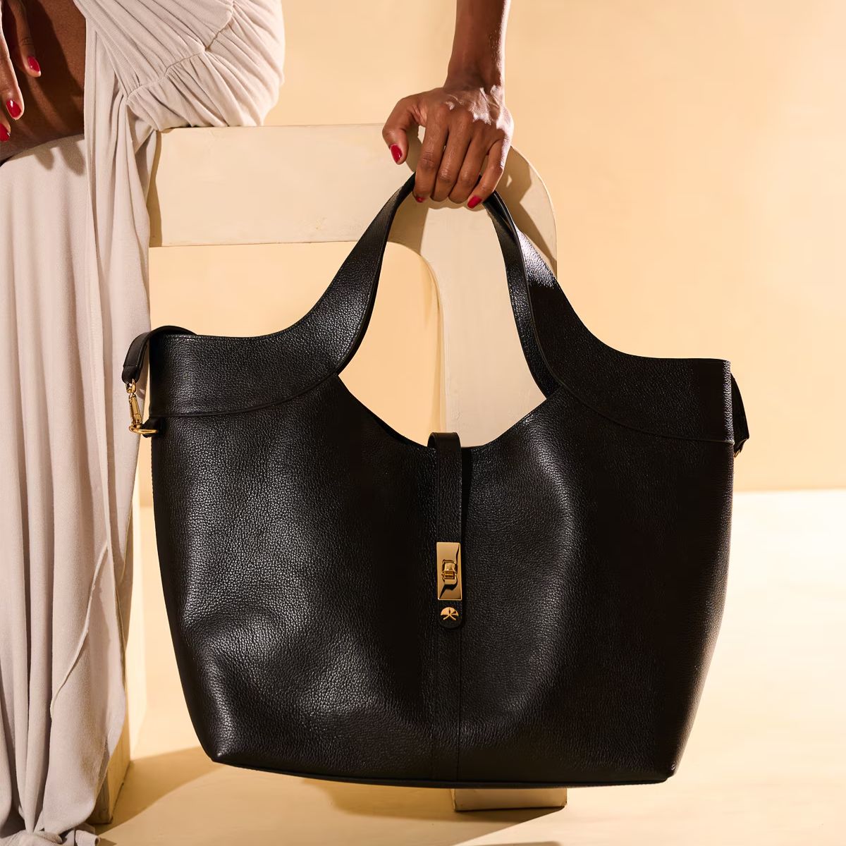 Bolsa Luiza Barcelos Shopping Em Couro Com Fecho Dourado