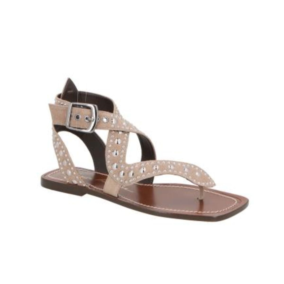 Rasteira Luiza Barcelos Em Couro Com Tachas Prateadas
