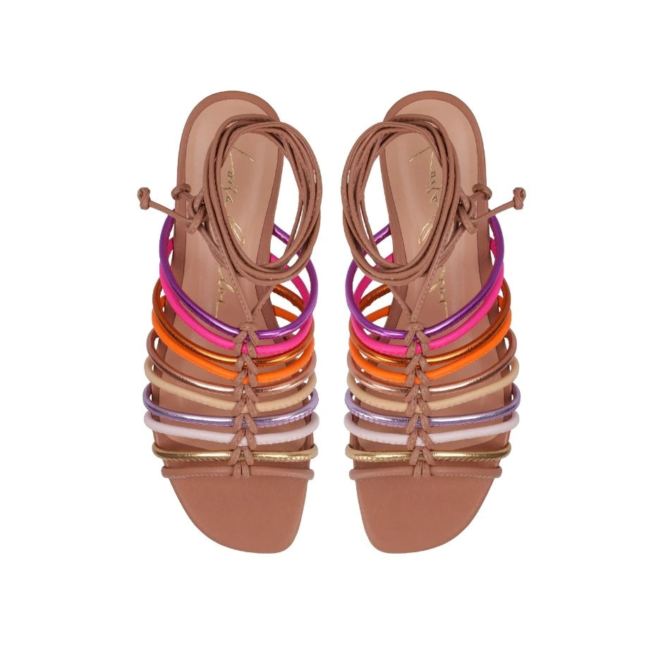 Sandália Luiza Barcelos Marrom Tiras Coloridas