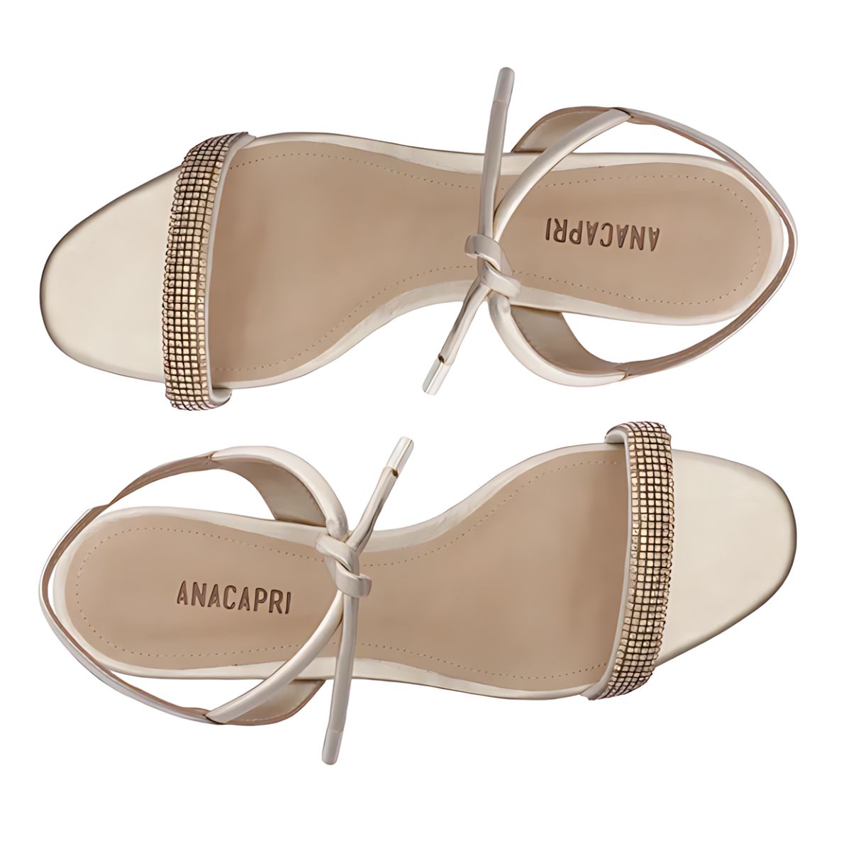 Sandália Anacapri Salto Bloco Amarração Tira Brilhosa