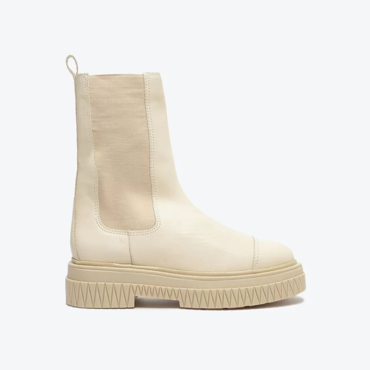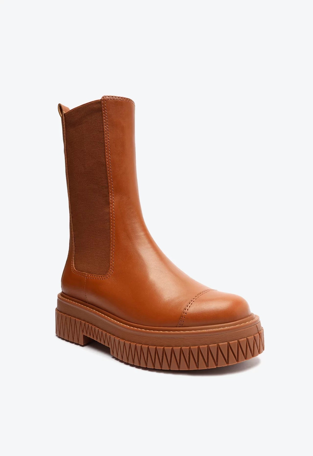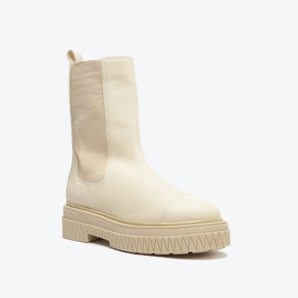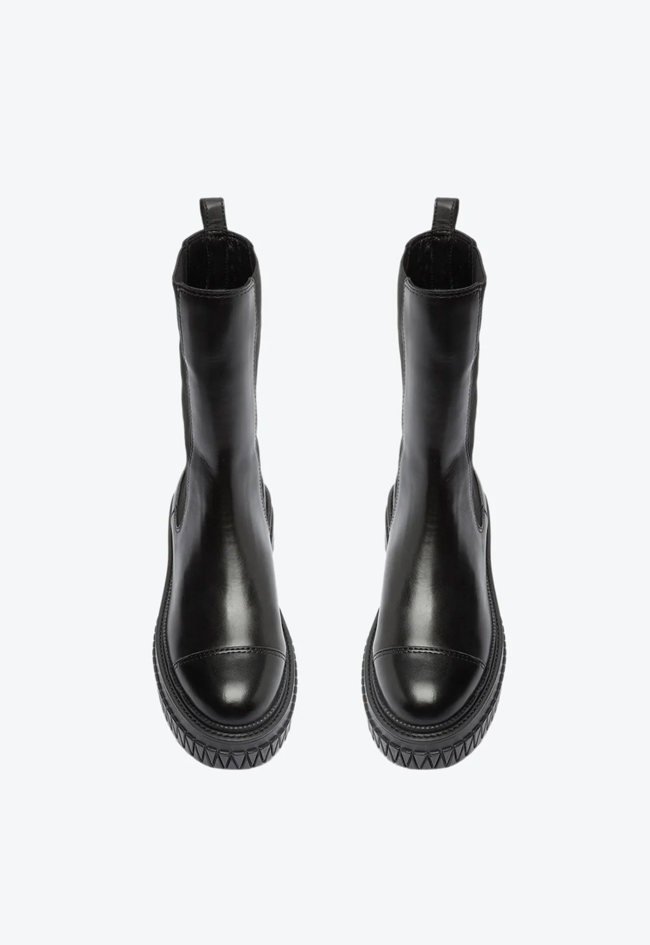 Com um solado rosa cheio de atitude, essa bota de cano médio ganha um contraste incrível com o couro preto e o shape robusto e tratorado. Suas linhas que remetem ao triângulo dão um toque extra de estilo, enquanto o elástico reforça sua praticidade. Impactante e fashion!