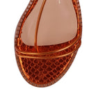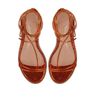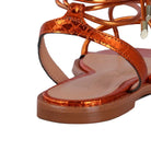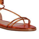 A elegância reside na delicadeza! Por isso, as tiras extremamente finas desta sandália gladiadora convidam à versatilidade das amarrações. O modelo é confeccionado em material tecnológico, na bela tonalidade laranja aperol. Suas amarrações são ultrafinas e longas, o bico é arredondado com uma borda saliente e apresenta ponteiras metálicas.